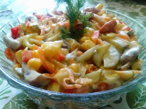 Сверху украшаем салат измельченной зеленью и грибочками так, чтобы блюдо напоминало летнюю лесную полянку. На зимние праздники можно сделать характерную для этого времени года презентацию. В этом случае салат. Полянка с копченой курицей и Читать далее |